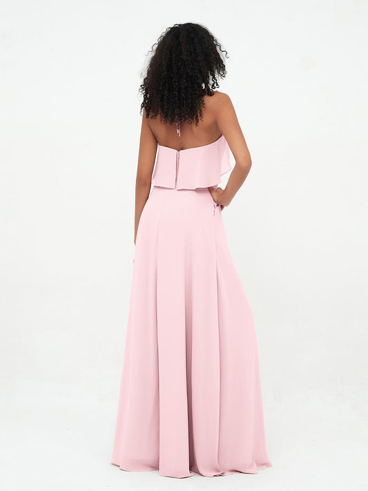 Babaroni YvonneVestidos largos de chiffon sin tirantes y escote corazón Rosa Claro