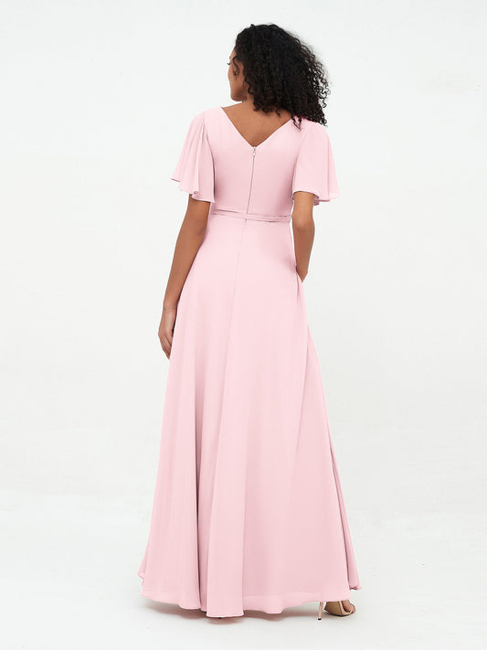 Babaroni DanaVestidos largos de chiffon con escote en V y espalda abierta Rosa Claro