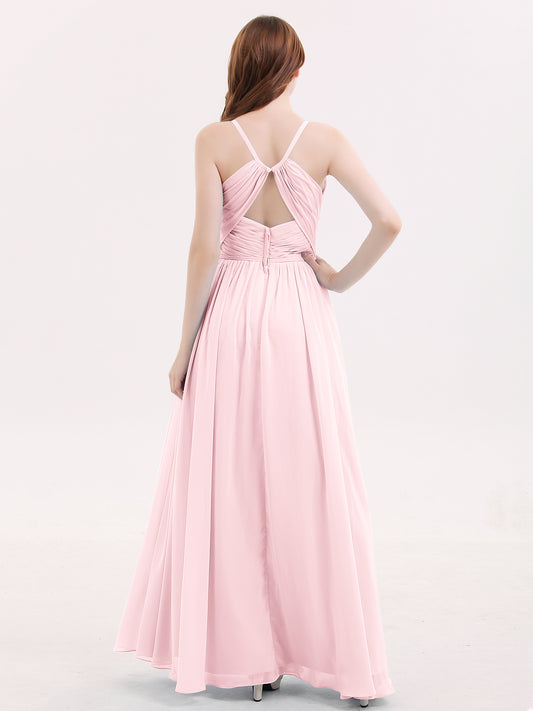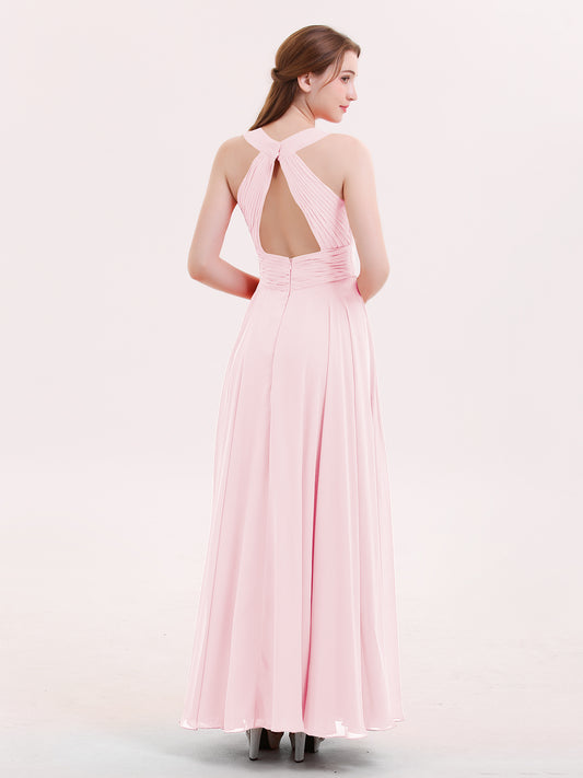 Babaroni TobeyTobey Cabestro Gasa Vestido De Dama De Honor De Espalda Abierta Rosa Claro