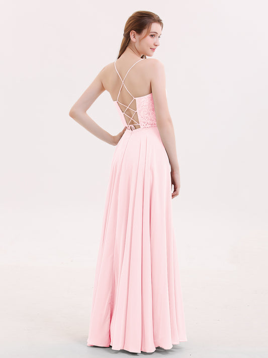 Babaroni VivienVivien Hombro Tirante Encaje Y Gasa Largo Vestido Rosa Claro