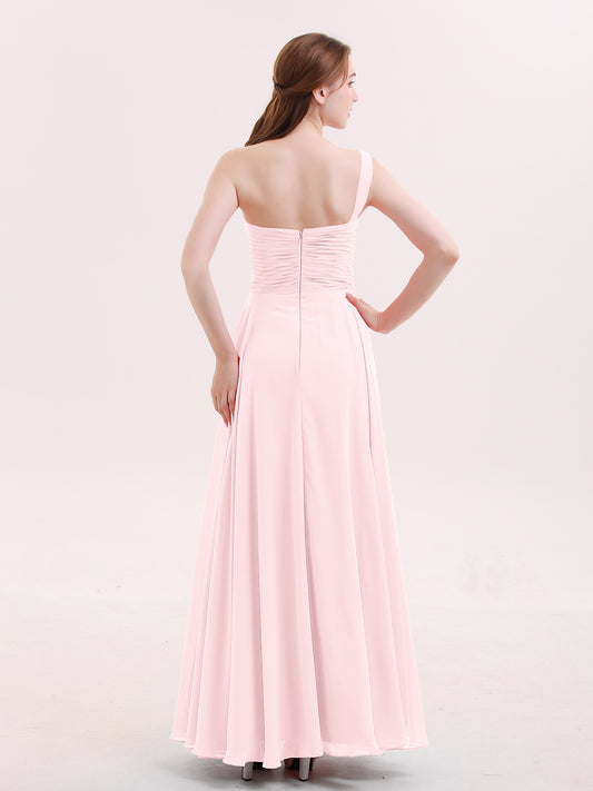 Babaroni YeddaYedda Un Hombro Gasa Largo Corte De Dama De Honor Rosa Claro