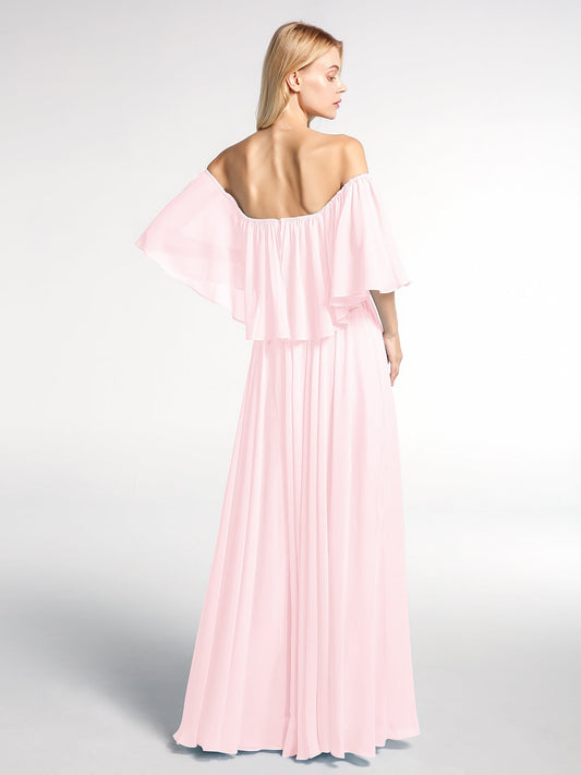 Babaroni VirginiaVestidos máximos de chiffon con falda escalonada estilo off shoulder Rosa Claro