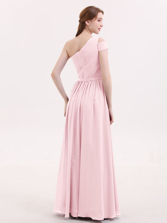 Babaroni MaggieMaggie Un Hombro Gasa Largo Vestido De Dama De Honor Rosa Claro