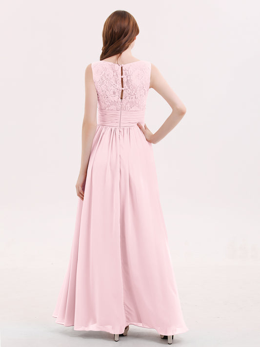 Babaroni PearlPearl Largos Vestidos De Dama De Honor Con Mangas De La Tapa Rosa Claro
