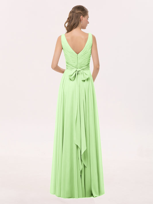 Babaroni CelinaCelina Escote En V Gasa Vestido De Dama De Honor Hasta El Topillo Salvia