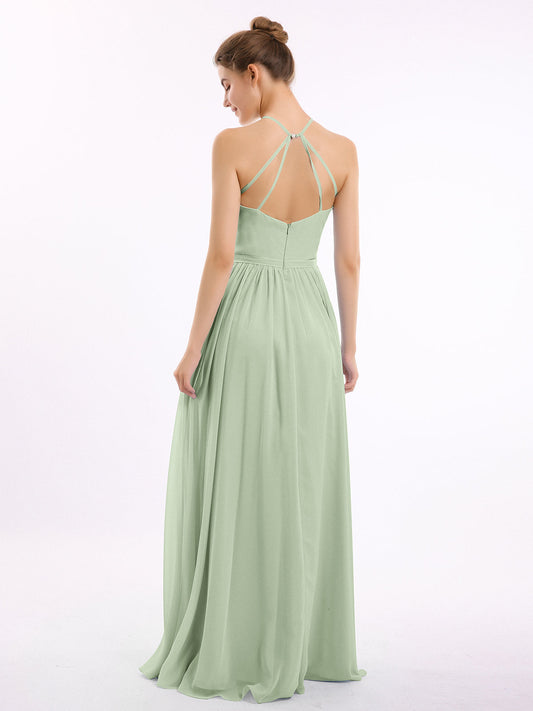 Babaroni LesleyVestidos largos de chiffon estilo halter con doble tirante Salvia polvorienta