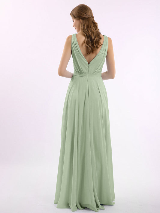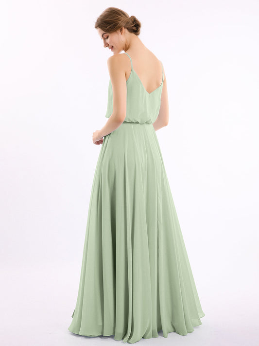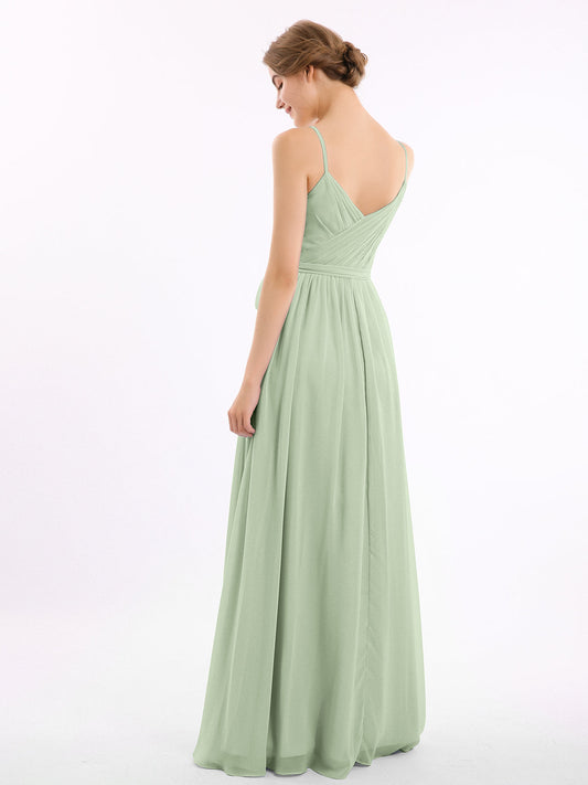Babaroni VickyVestidos de dama de honor de chiffon con escote en V y tirantes finos Salvia polvorienta