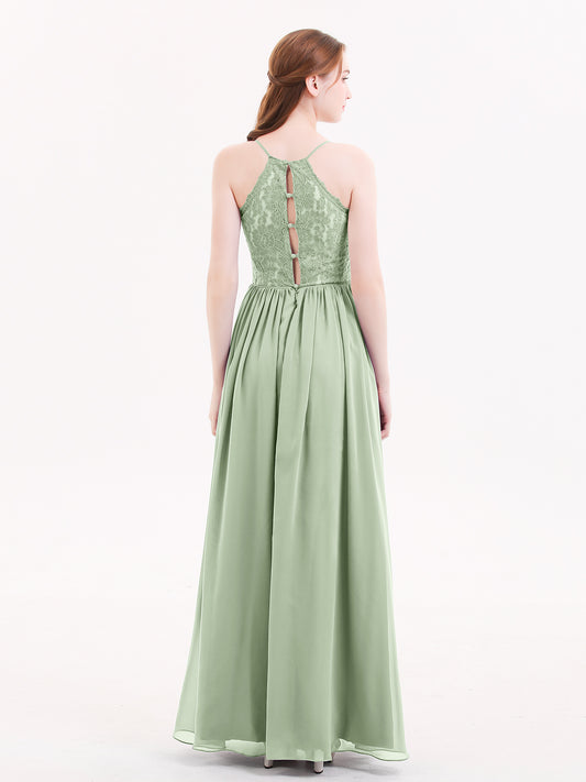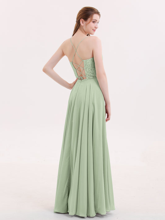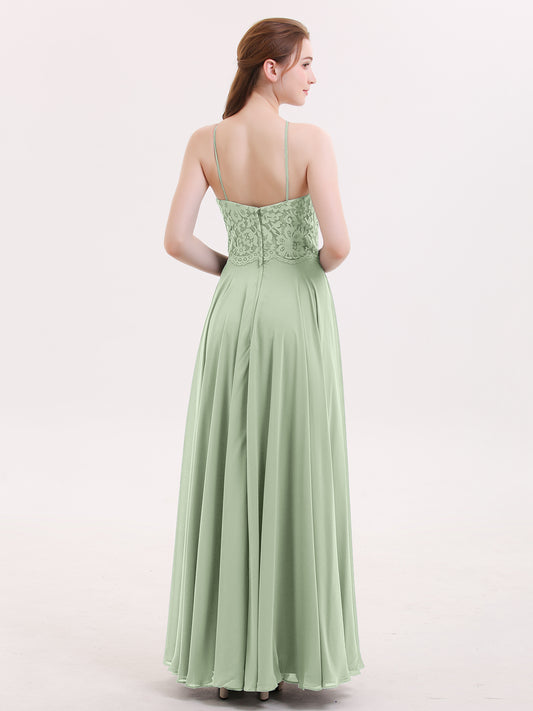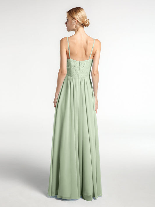 Babaroni CherryVestidos largos de encaje y chiffon con tirantes finos Salvia polvorienta