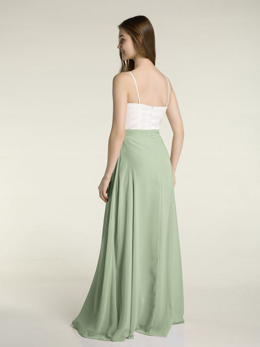 Babaroni SarahVestidos de falda de chiffon con cuerpo de encaje marfil y abertura Salvia polvorienta