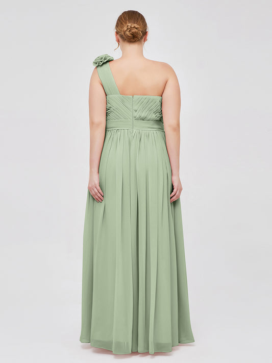 Babaroni MirabelleMirabelle Un Hombro Gasa Vestido Con Tirante Flores Salvia Polvorienta