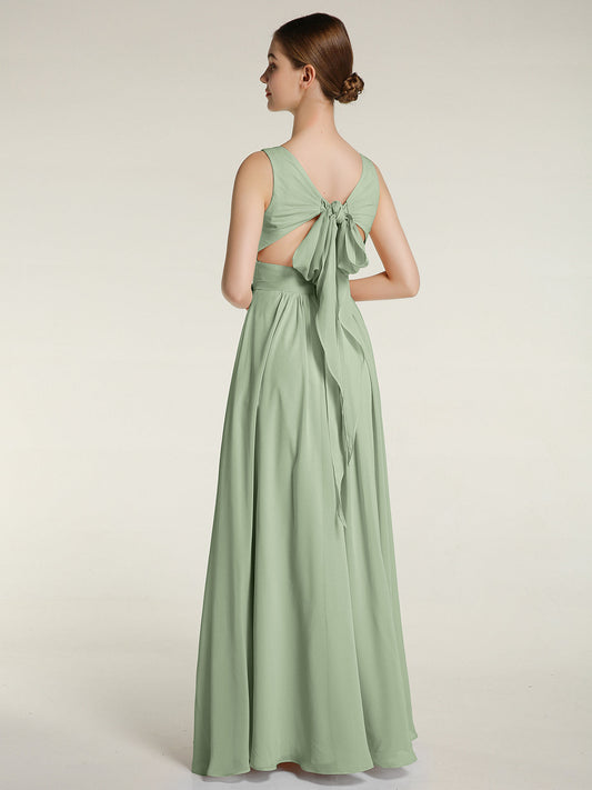 Babaroni JaneVestidos largos de chiffon estilo halter con lazo Salvia polvorienta