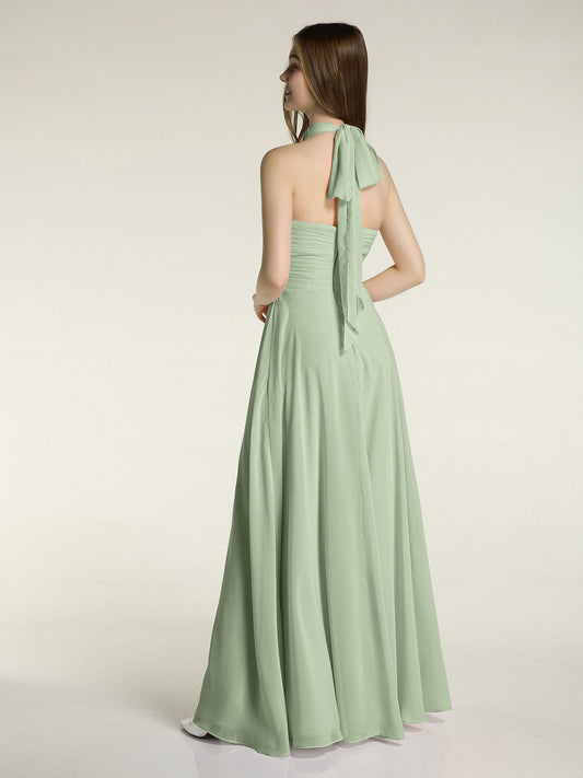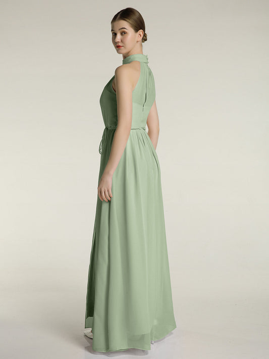 Babaroni MandyVestidos largos de chiffon estilo halter para damas de honor Salvia polvorienta