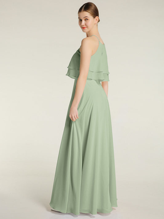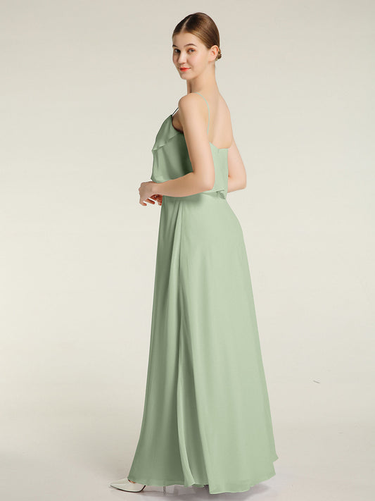 Babaroni FannyFanny Cabestro Largo Gasa Vestido De Dama De Honor Salvia Polvorienta