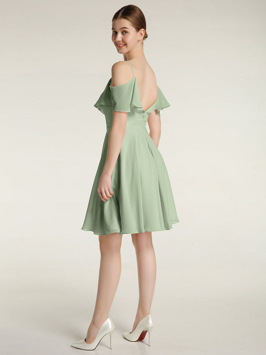 Babaroni MabelMabel Corto Gasa Vestido Con Escote En V Salvia Polvorienta