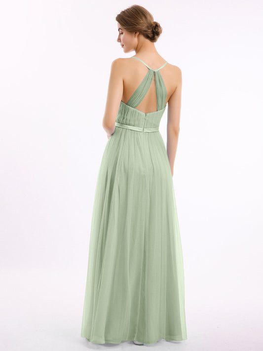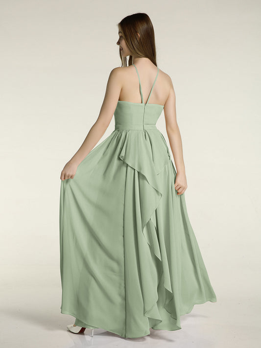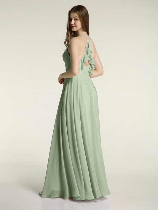 Babaroni MiriamVestidos largos de dama de honor estilo halter de chiffon Salvia polvorienta