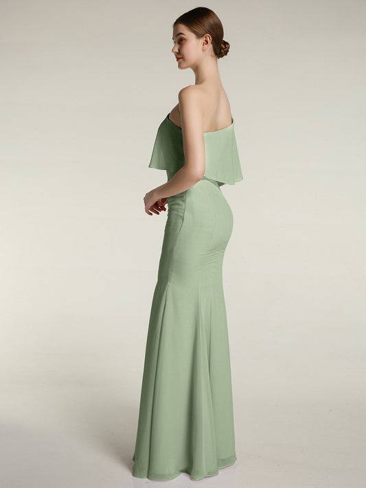 Babaroni EdenEden Un Volante Hombro Largo Vestido De Dama De Honor Salvia Polvorienta