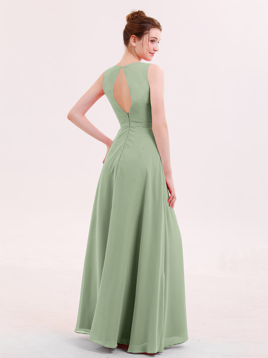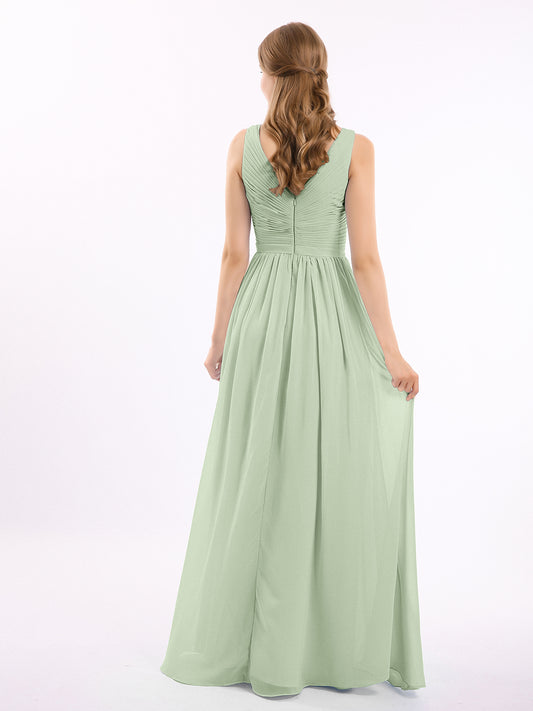 Babaroni JennyJenny Largo Vestidos De Dama De Honor Con Corpino Plisado Salvia Polvorienta
