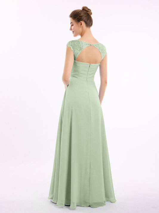 Babaroni MarleyVestidos de dama de honor de chiffon con mangas cap de encaje Salvia polvorienta