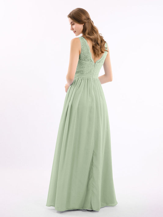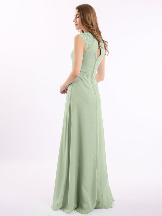 Vestidos largos con la parte superior de encaje y la parte inferior de chiffon Salvia polvorienta