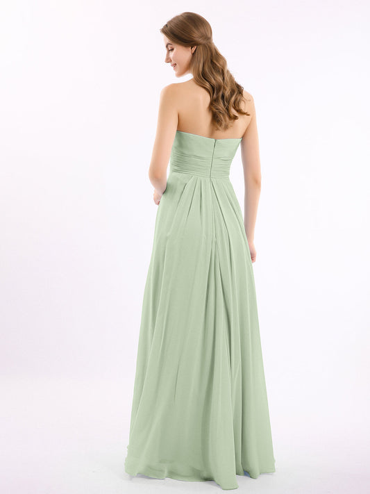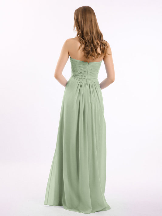 Vestidos de chiffon sin tirantes con escote en corazón Salvia polvorienta