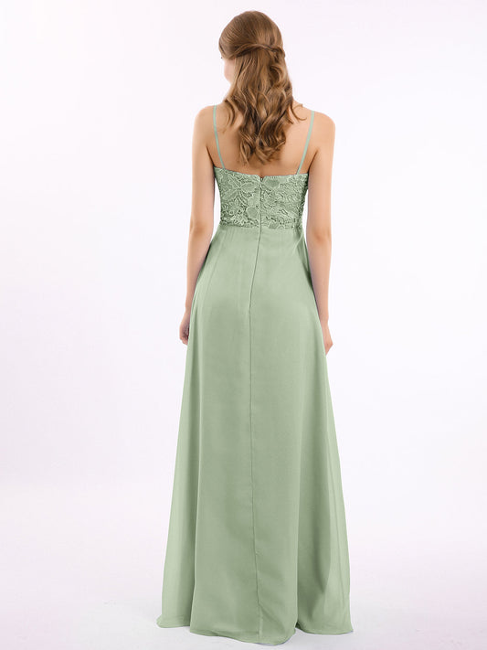 Vestidos largos de encaje y chiffon con tirantes finos Salvia polvorienta