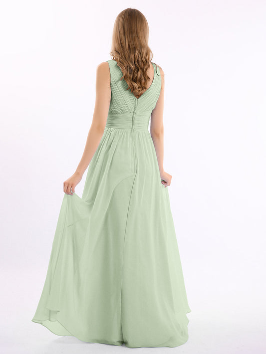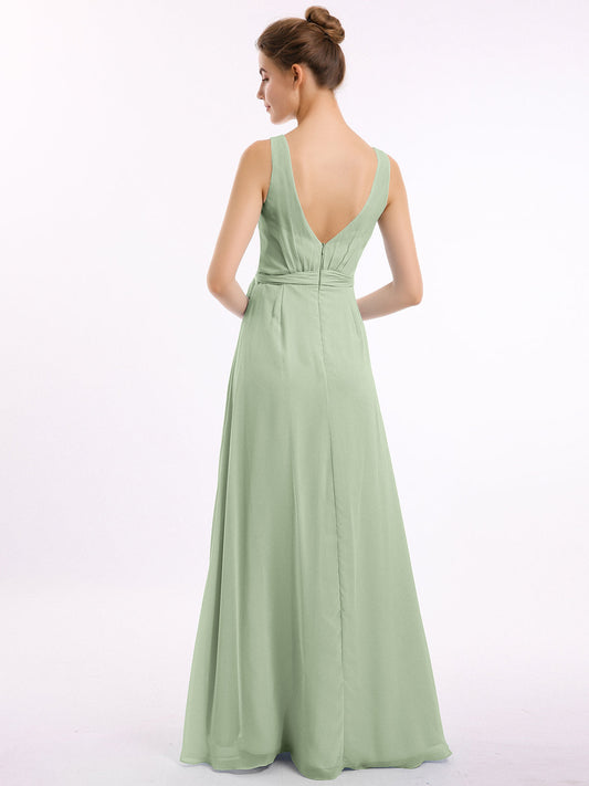 Vestidos largos de chiffon con escote en V hasta el suelo Salvia polvorienta