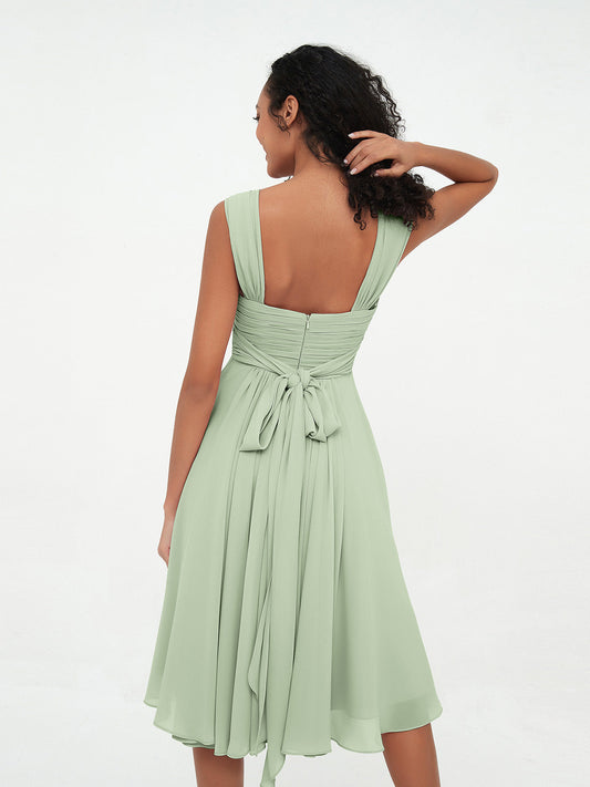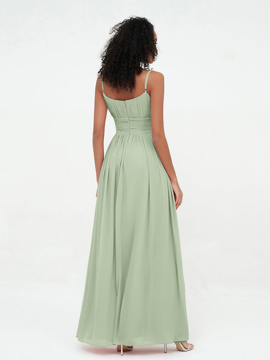 Vestidos de dama de honor de chiffon con tirantes spaghetti y escote en V Salvia polvorienta
