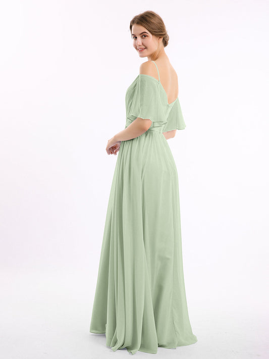 Vestidos de chiffon con tirantes finos y hombros descubiertos Salvia polvorienta