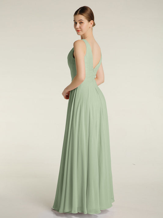 Babaroni CarolVestidos sencillos de chiffon con escote en V Salvia polvorienta