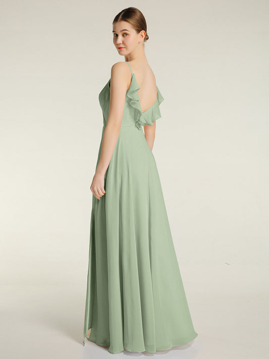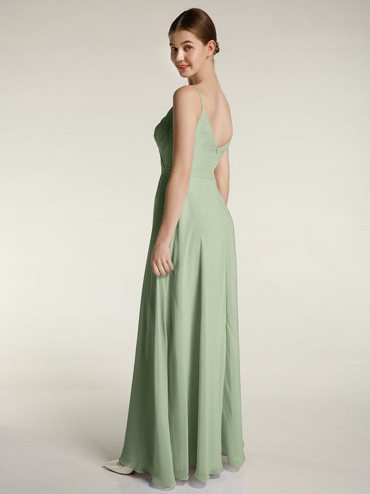 Babaroni PagVestidos estilo A-line de chiffon con escote en V y abertura Salvia polvorienta
