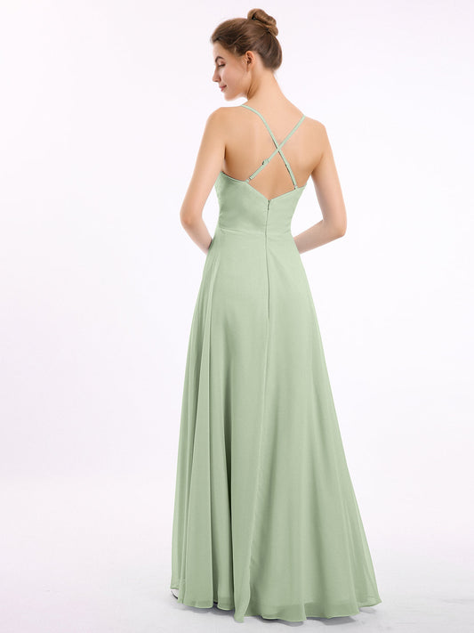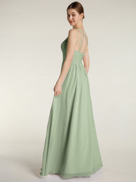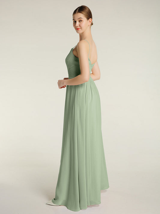Babaroni FeliciaVestidos largos de chiffon con tirantes finos y escote en corazón Salvia polvorienta