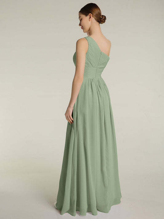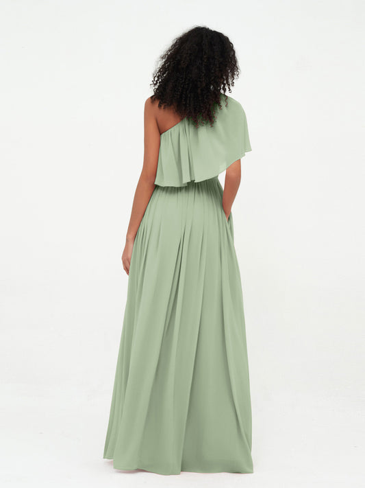 Babaroni MildredVestidos largos de chiffon de un hombro con bolsillos Salvia polvorienta