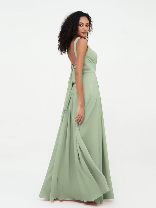Babaroni VitaVestido de dama de honor de chiffon con escote en V y espalda descubierta Salvia polvorienta