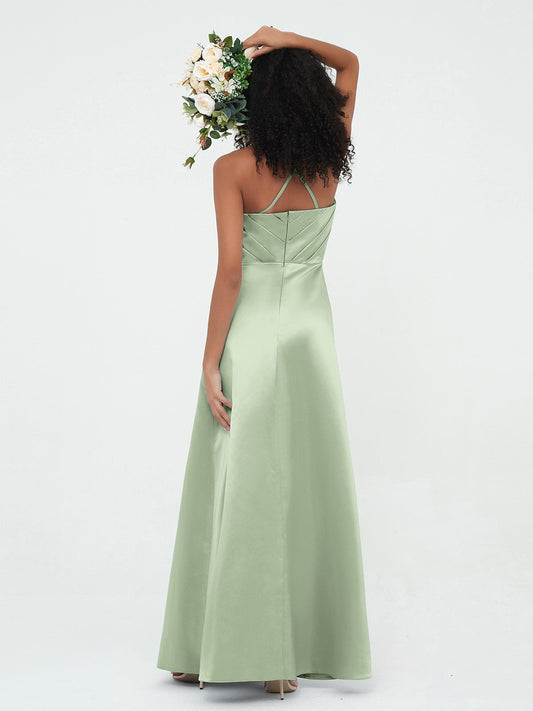 Babaroni TrudaVestidos máximos de satén estilo A-line con cuello halter y bolsillos Salvia polvorienta