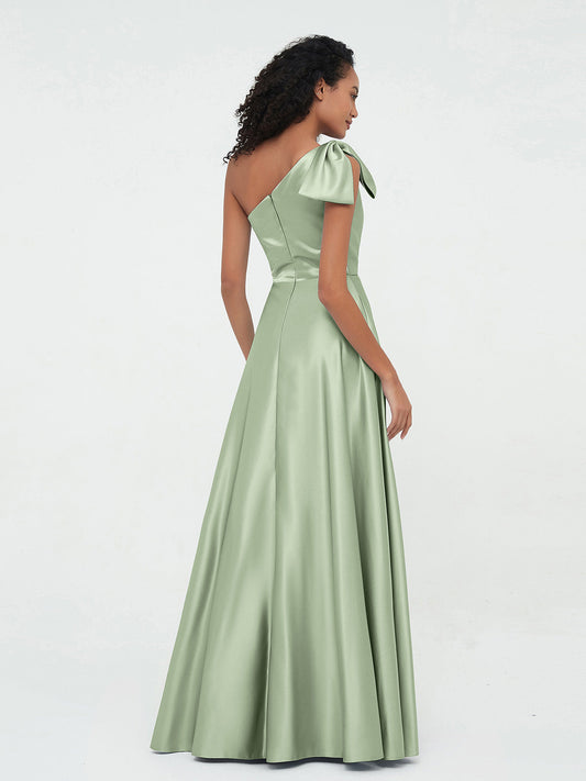 Babaroni PrimroseVestidos largos de satén de un hombro con bolsillos Salvia polvorienta