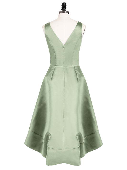 Babaroni HannahHannah Escote En V Saten Alto Bajo Vestidos De Dama De Honor Salvia Polvorienta