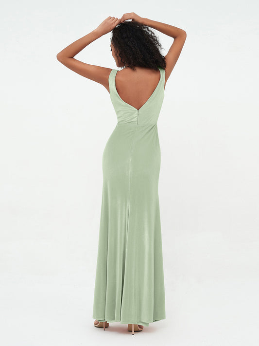 Babaroni CharlotteVestidos máximos de terciopelo estilo sirena con escote en V Salvia polvorienta