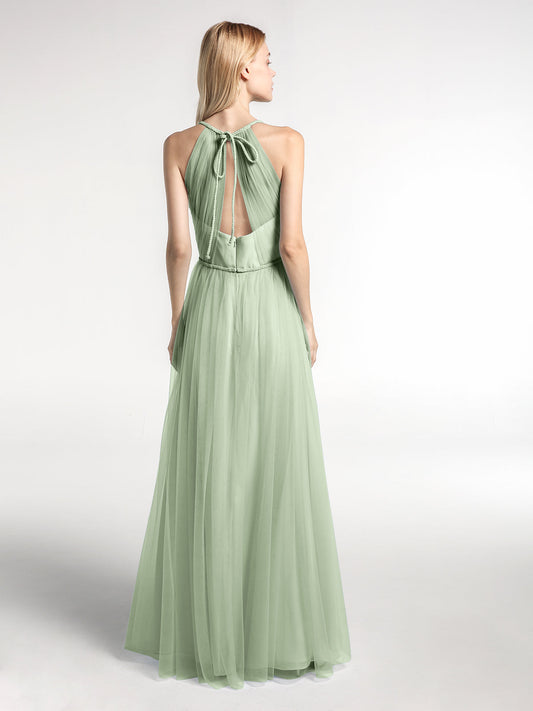 Babaroni VeraVestidos largos de tul cruzado plisado con tirantes decorados con cuentas Salvia polvorienta