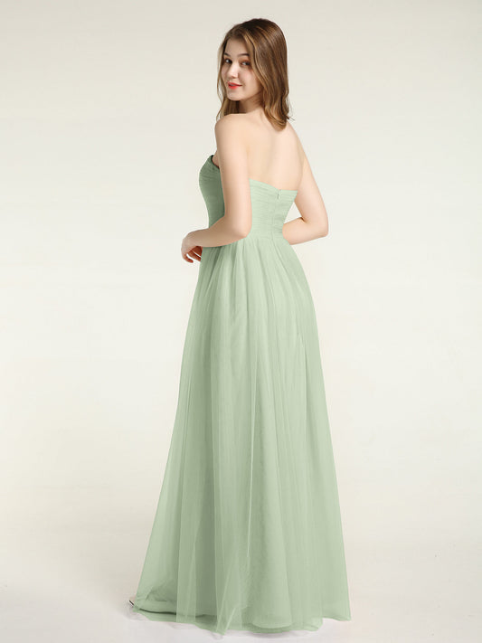 Babaroni ViolaVestidos largos de dama de honor sin tirantes con escote en corazón y falda de tul Salvia polvorienta