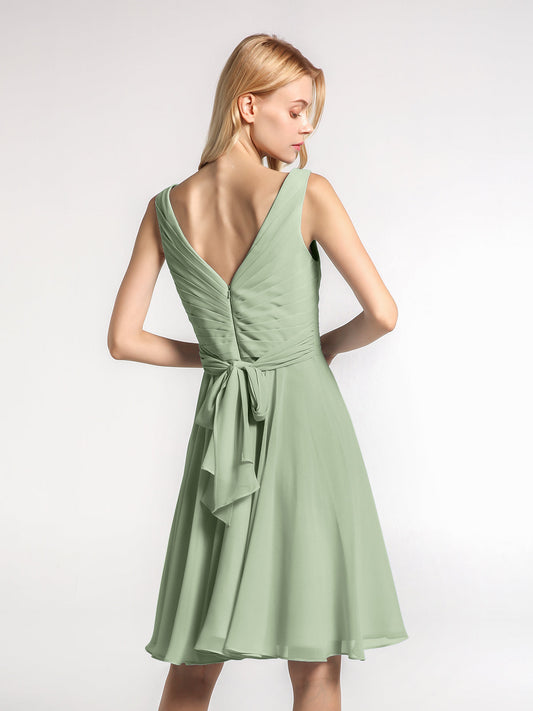 Babaroni NatividadNatividad Cabestro Escote En V Gasa Corto Vestidos De Dama De Honor Salvia Polvorienta