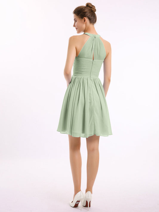 Babaroni SylviaVestidos cortos de dama de honor de chiffon estilo halter Salvia polvorienta