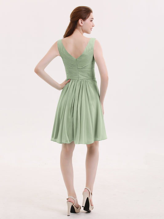 Babaroni ShirleyShirley Escote En V Gasa Corto Vestidos De Dama De Honor Salvia Polvorienta