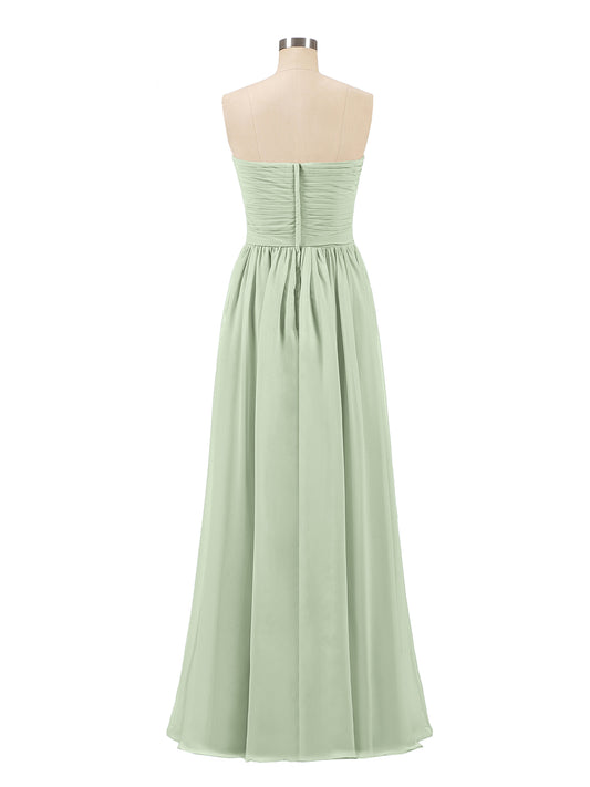 Babaroni FredericaFrederica Sin Tirante Gasa Largo Vestido De Dama De Honor Salvia Polvorienta