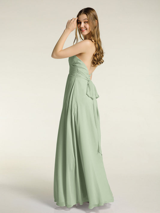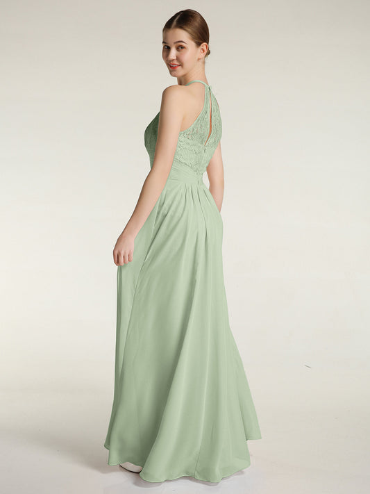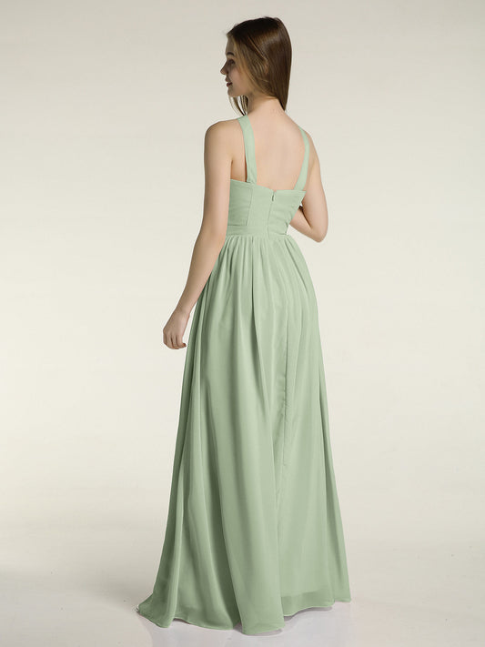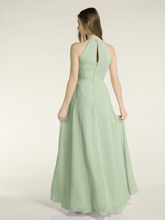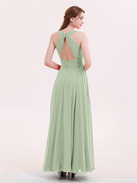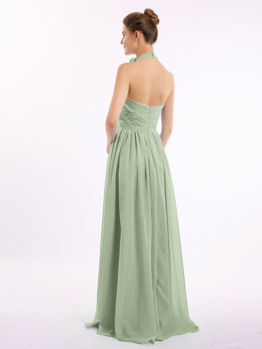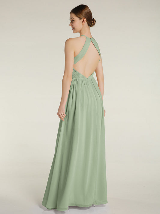 Babaroni MandyVestidos largos de chiffon estilo halter para damas de honor Salvia polvorienta