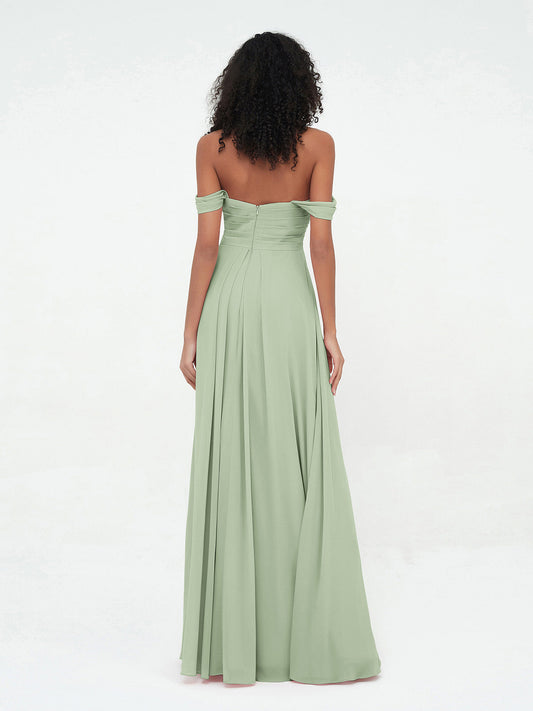 Babaroni LindsayLindsay Fuera Del Hombro Corte Imperial Vestidos De Dama De Honor Salvia Polvorienta