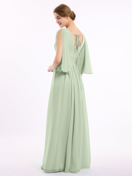 Babaroni NellyVestidos de chiffon con escote en V profundo y abertura Salvia polvorienta
