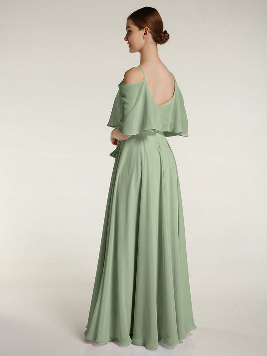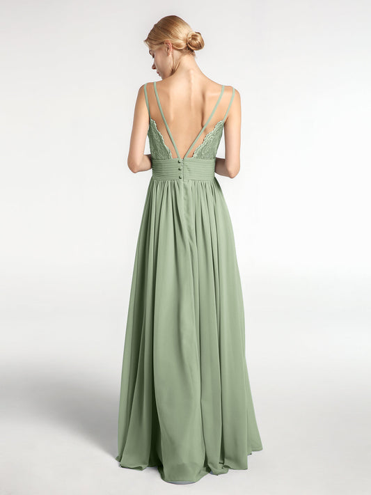 Babaroni CoraVestido largo de dama de honor de chiffon con tirantes dobles Salvia polvorienta