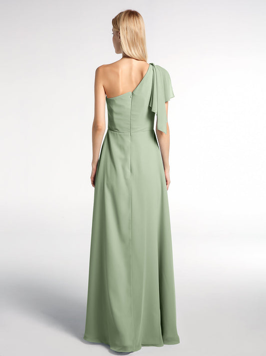 Babaroni XantheVestidos máximos de chiffon de un solo hombro con abertura Salvia polvorienta