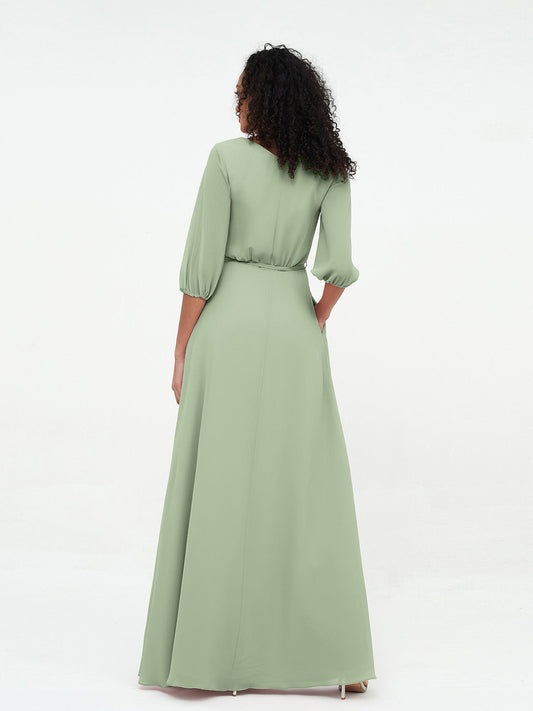 Babaroni UnaVestidos máximos de chiffon con escote en V profundo y mangas 1/2 Salvia polvorienta