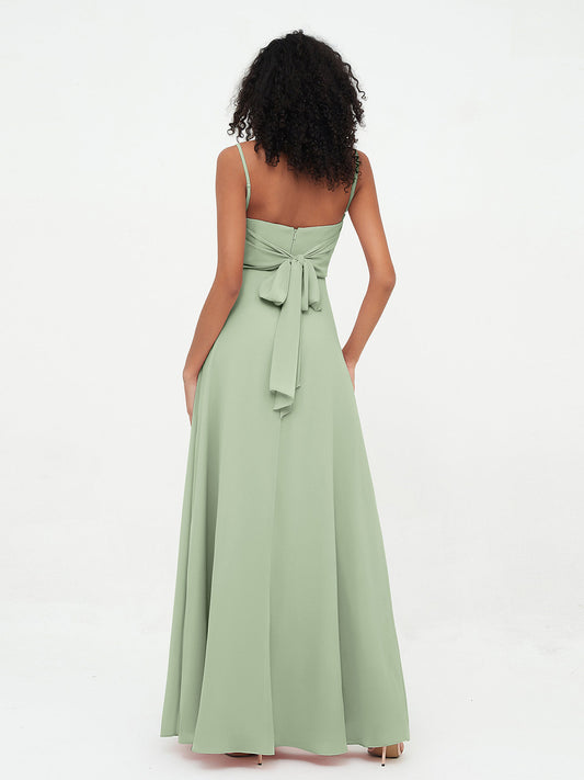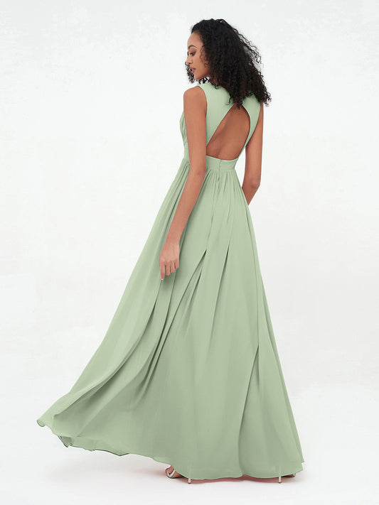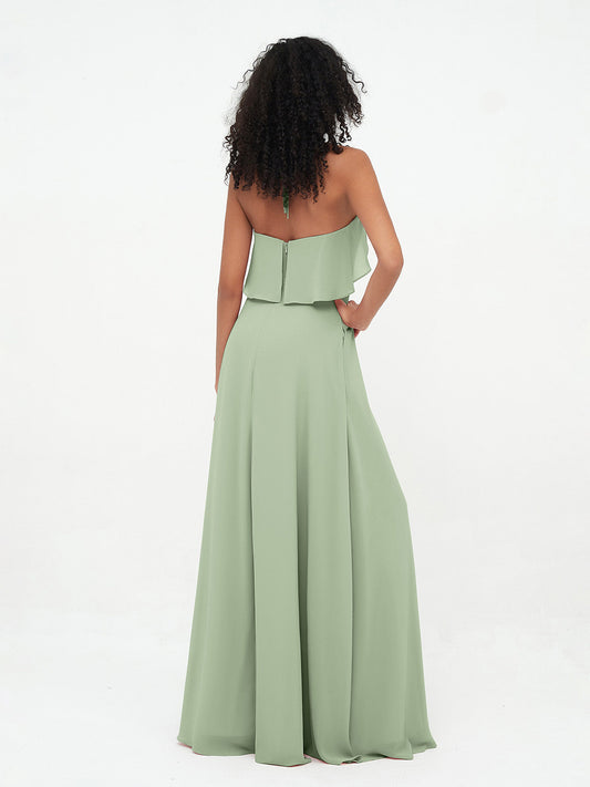 Babaroni AmyVestidos largos de dama de honor de chiffon con tirantes de cuello halter Salvia polvorienta